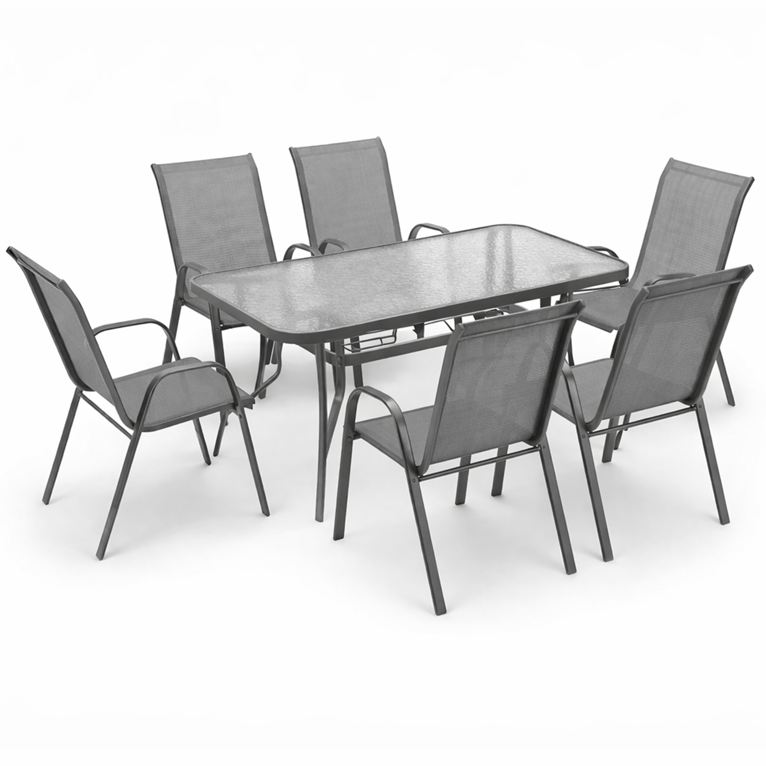 6x Krzesło MINORKA II SZARE + Stół MAJORKA TRIO 120×70 SZARY
